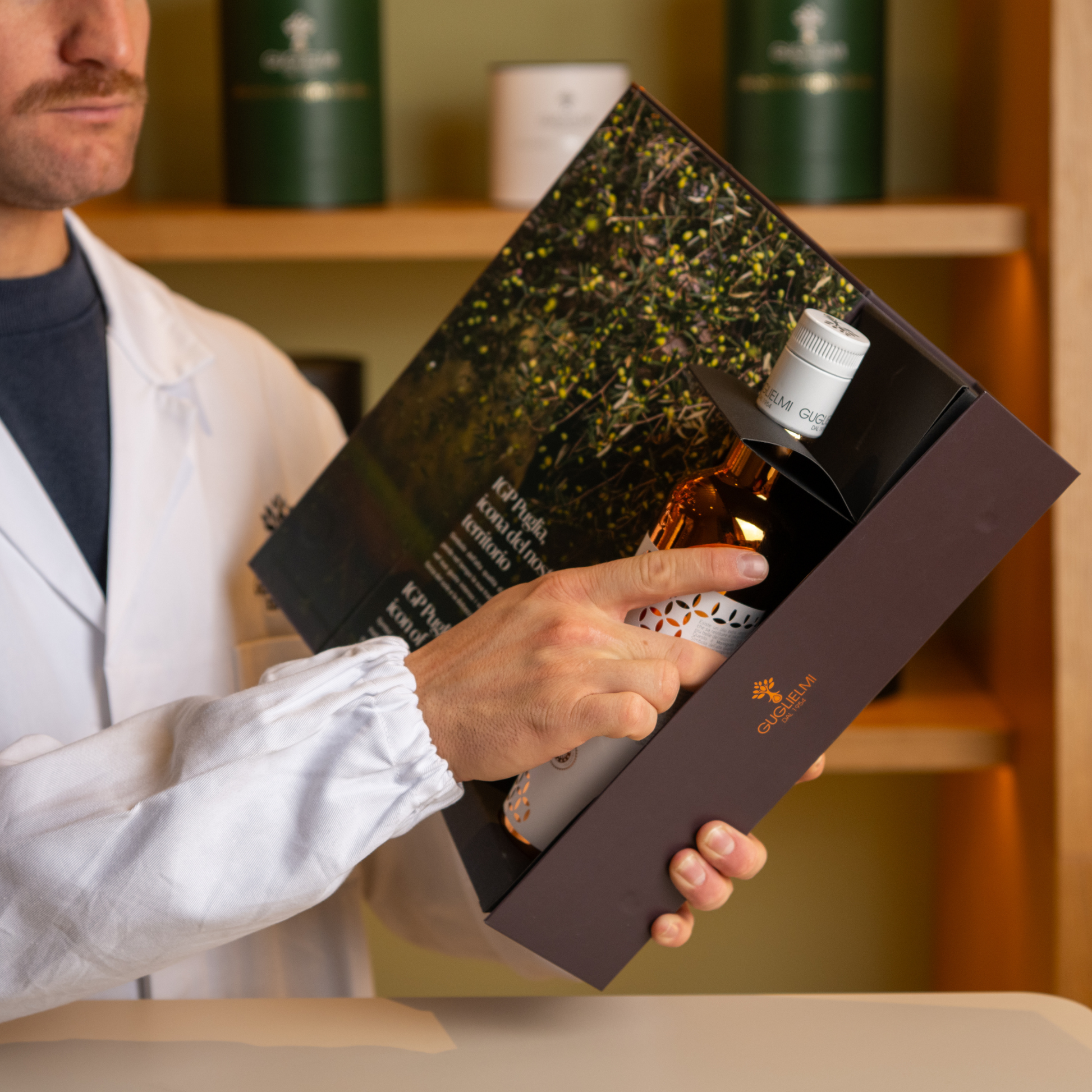 Die Guglielmi Puglia PGI Geschenkbox ist ein edles Präsent für Feinschmecker und Liebhaber hochwertiger Olivenöle. Sie enthält eine Flasche Monogram Olio di Puglia IGP oder Monogram Olio di Puglia Bio IGP – beide mit geschützter geografischer Angabe (IGP), die Qualität und Herkunft garantieren.